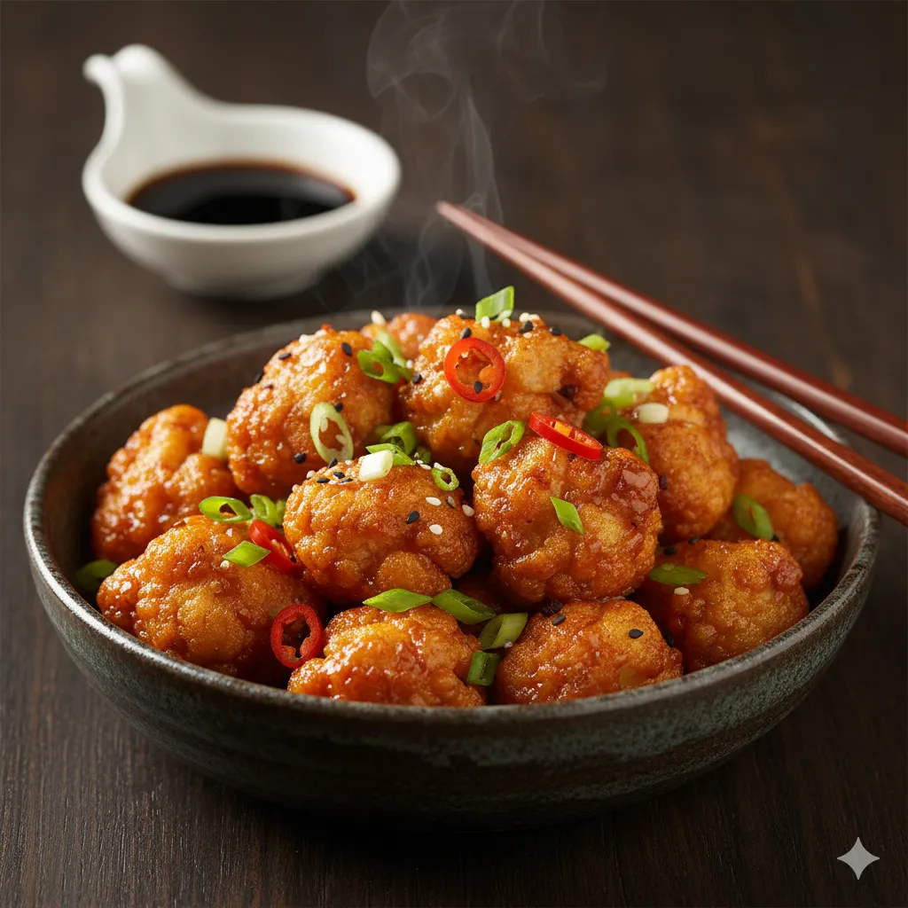 A timeless favorite in Indo-Chinese cuisine, our Gobi Manchurian Dry features crisp, golden-fried cauliflower florets tossed in a perfectly balanced, tangy-sweet, and mildly spicy sauce. Each bite delivers a delightful crunch, complemented by the aromatic flavors of garlic, ginger, and green chilies, making it an irresistible starter for any occasion. Garnished with fresh spring onions…